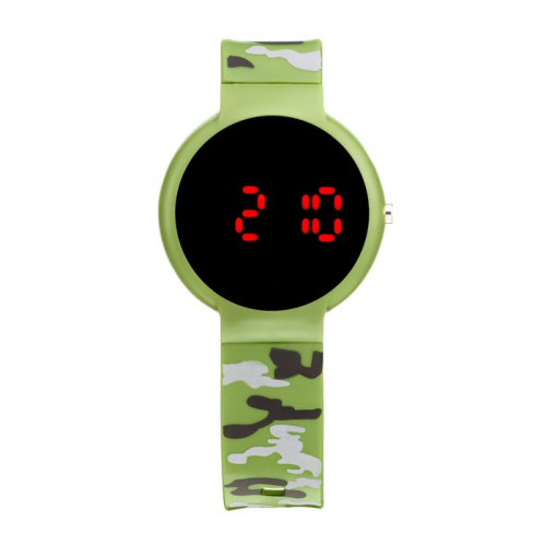 Часы наручные электронные с камуфляжным, силиконовым ремешком, зелёный камуфляж
