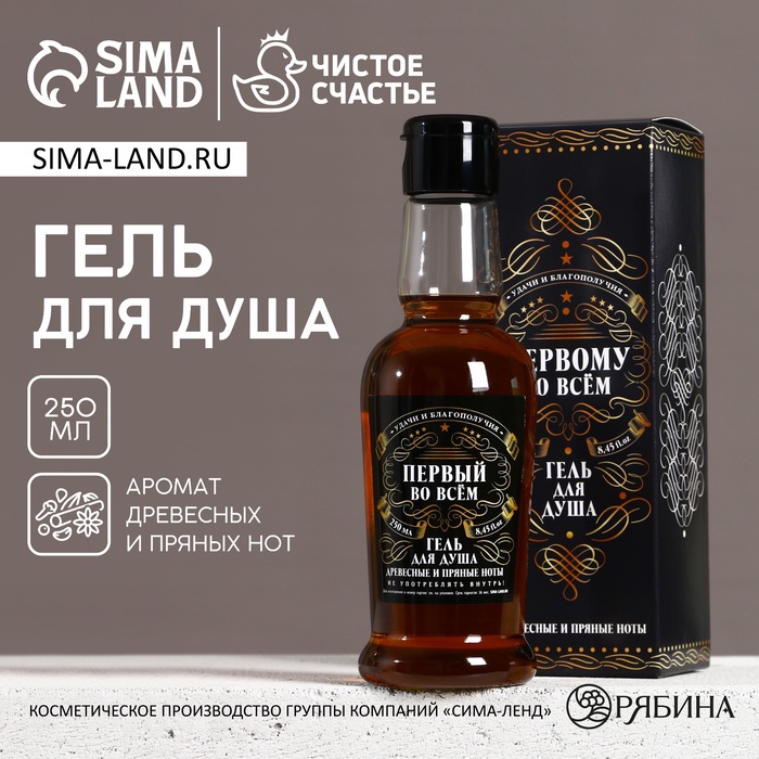Гель для душа коньяк «Первому во всём», 250 мл, аромат древесный с пряными нотами, Чистое счастье