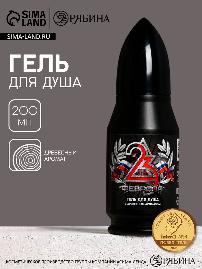 Гель для душа во флаконе пуля «23 февраля», 200 мл, Чистое счастье