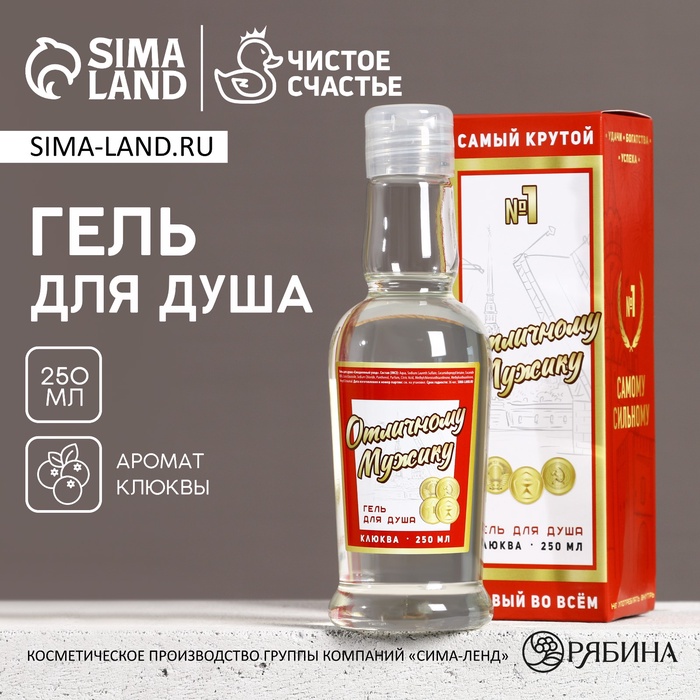 Гель для душа водка «Отличному мужику», 250 мл, аромат клюквы, Чистое счастье