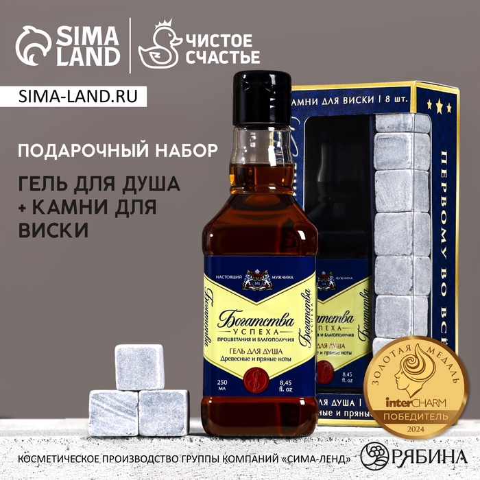Подарочный набор «Лучшему из лучших», гель для душа виски 250 мл и камни для виски, Чистое счастье