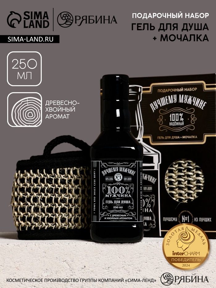 Подарочный набор «Лучшему мужчине», гель для душа во флаконе виски, чёрный и мочалка лента, Чистое счастье