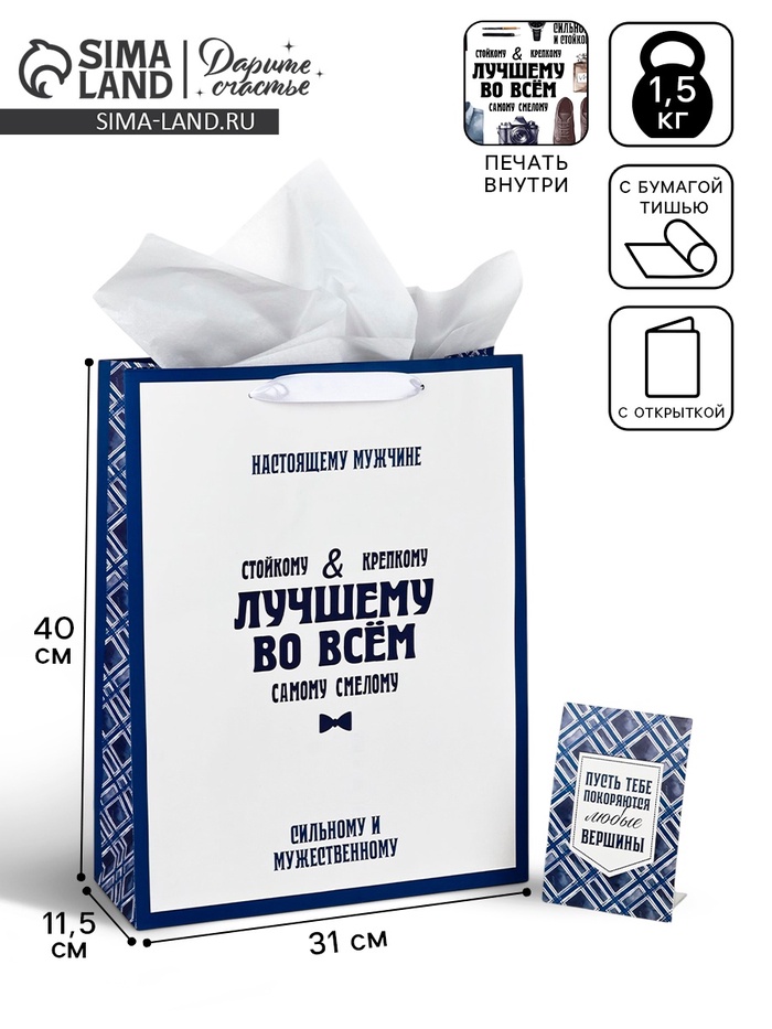 Пакет ламинированный двухсторонний «Лучшему», с тишью и открыткой, L 40×31×11.5