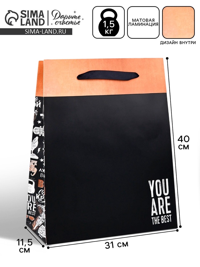Пакет ламинированный двухсторонний «Самый крутой», L 31×40×11.5 см