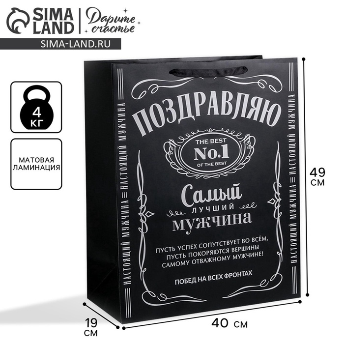 Пакет подарочный ламинированный, упаковка, «Поздравляю», XL 49×40×19 см