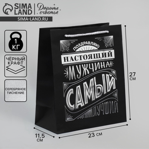 Пакет подарочный, упаковка, «Настоящий мужчина», чёрный крафт, 23×27×11.5 см