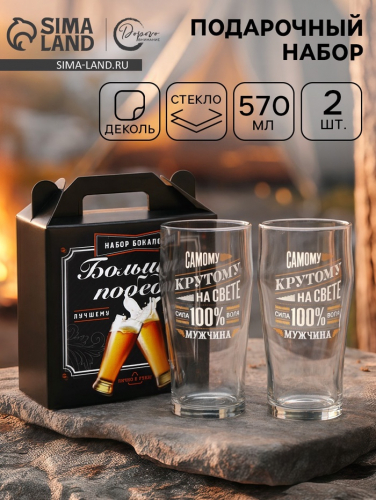 Бокалы для пива с надписью «100% мужик», 2 шт. по 570 мл