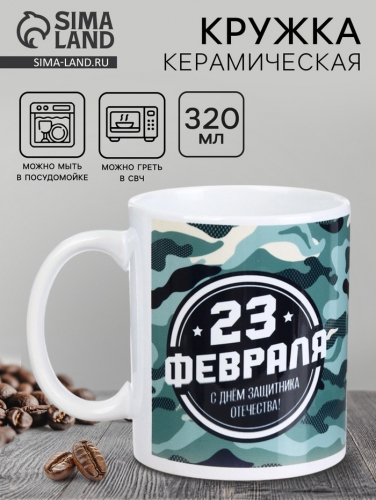 Кружка керамическая с сублимацией «23 февраля. Кот», 320 мл