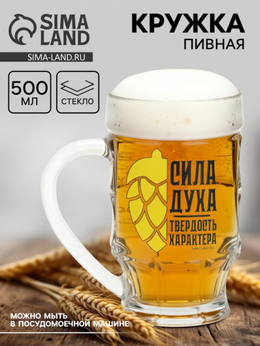 Кружка стеклянная пивная «Сила духа», 500 мл