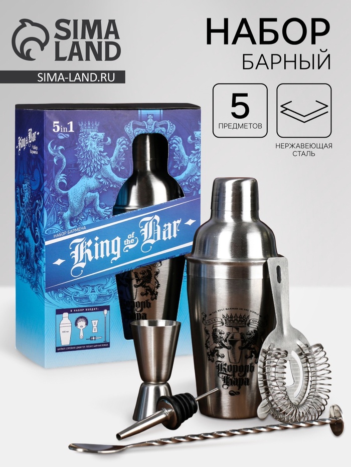 Набор для приготовления коктейлей «Король бара»: 5 предметов