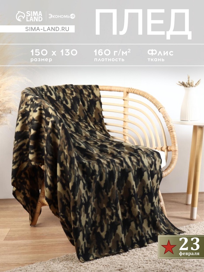 * Мужественный и стильный камуфляжный дизайн: Плед с камуфляжным принтом подчеркнет его силу, уверенность и любовь к приключениям.