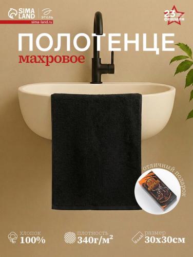 Полотенце махровое Этель «23 февраля» 30×30 см, 100% хлопок 340 г/м²