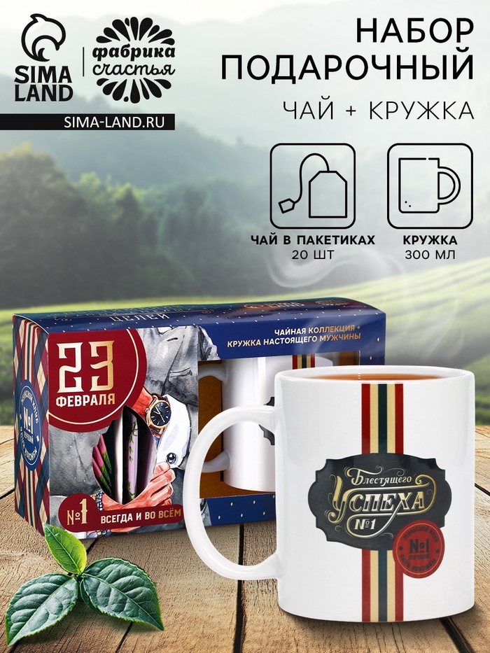 Подарочный набор «Блестящего успеха. 23 февраля»: чайное ассорти 20 шт. × 1.8 кружка, 300 мл.
