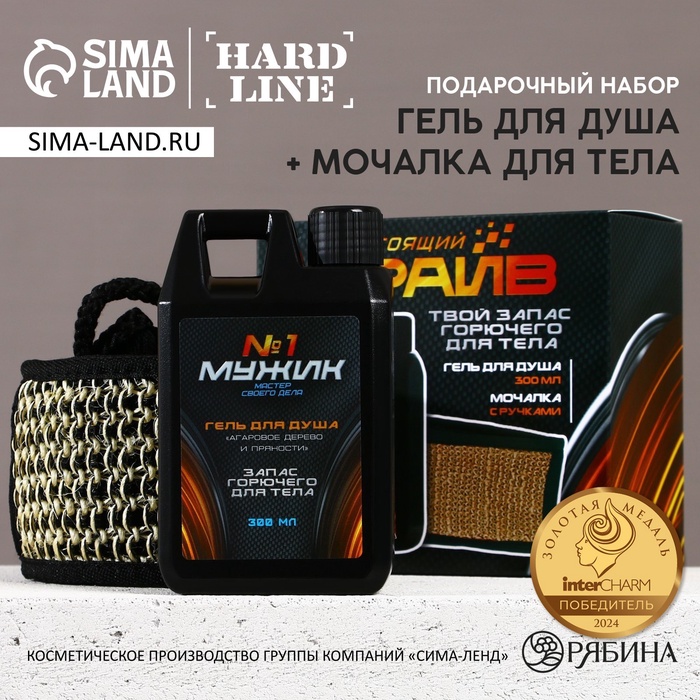 Подарочный набор косметики «Настоящий драйв», гель для душа во флаконе канистры 300 мл и мочалка для тела, аромат агарового дерева и пряностей, HARD LINE
