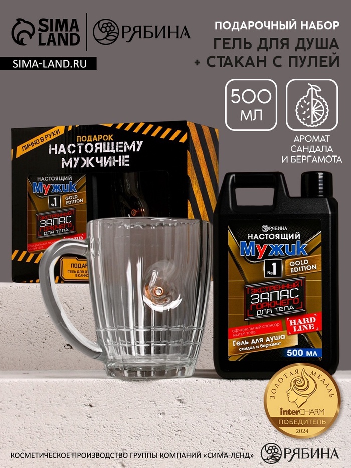 Подарочный набор «Настоящему мужику», гель для душа канистра 500 мл и стакан с пулей, HARD LINE