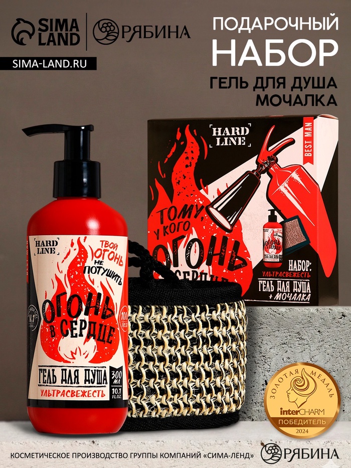 Подарочный набор «Огонь в сердце»: гель для душа 300 мл и мочалка для тела, HARD LINE