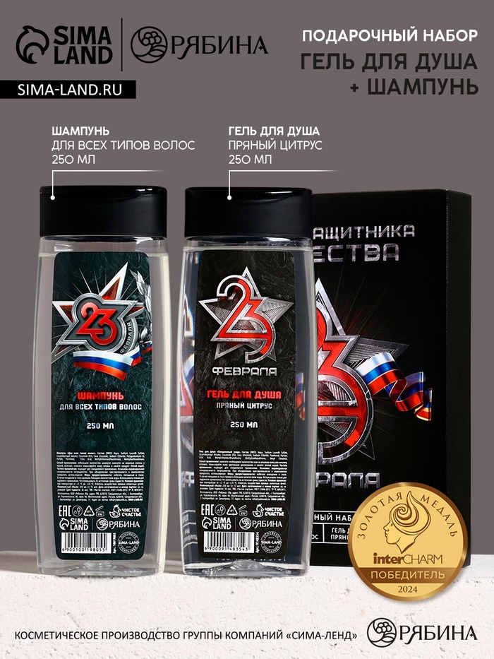 Подарочный набор «С 23 Февраля!»: гель для душа и шампунь для волос, 2×200 мл, HARD LINE