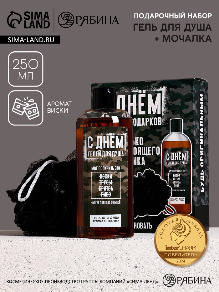 Подарочный набор «С днем крутых подарков», гель для душа 250 мл и мочалка для тела, HARD LINE