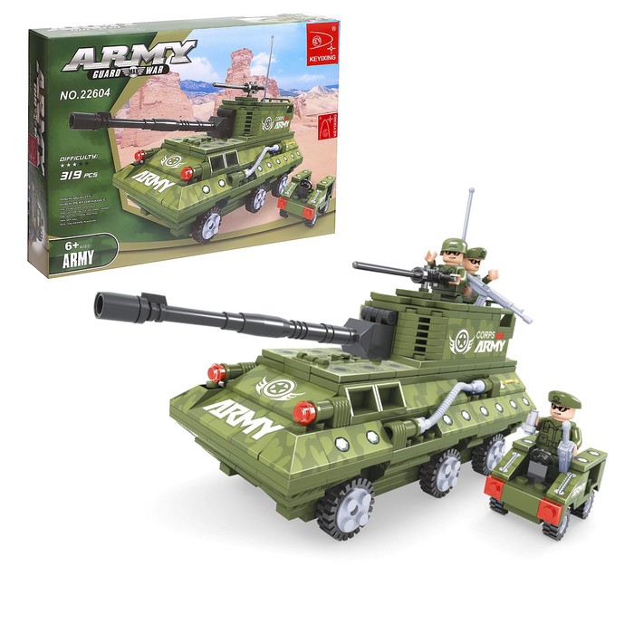* Набор содержит 319 деталей и позволяет сконструировать военные машины и фигурки солдат.
