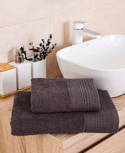 Коллекция однотонных полотенец с жаккардовым бордюром в ЭКО-стиле.