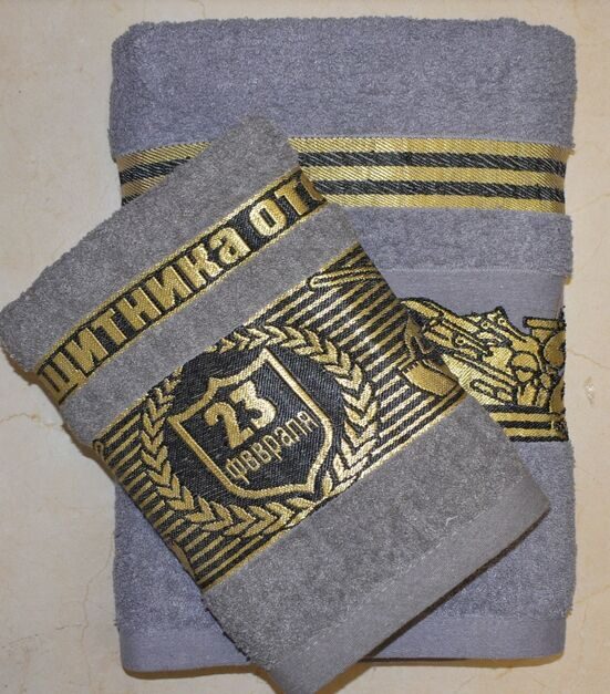 Махровое полотенце "Настоящему мужчине"- СЕРЫЙ 70*140 см. хлопок 100%
