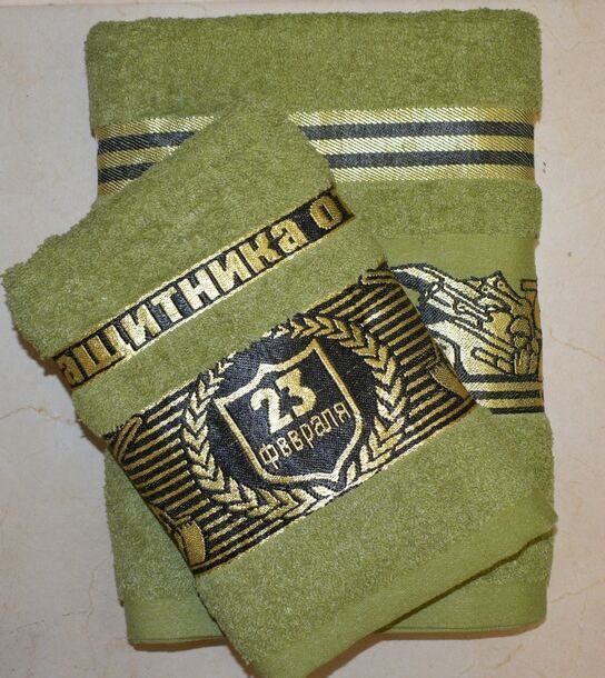 Махровое полотенце "Настоящему мужчине"- ЗЕЛЕНЫЙ 70*140 см. хлопок 100%