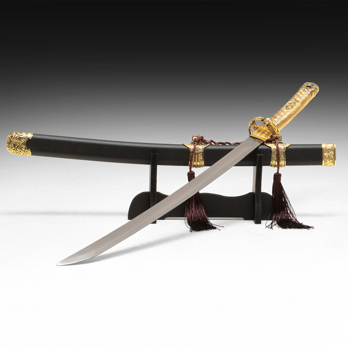 * Элегантный дизайн: золотистый и черный цвета в сочетании с бронзовой отделкой делают катану великолепным элементом декора, который идеально впишется в любой интерьер.