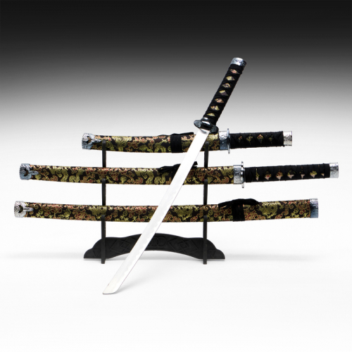 * Удобство хранения: Набор комплектуется стильной подставкой, позволяющей удобно разместить катаны в любом интерьере и демонстрировать их как произведение искусства.