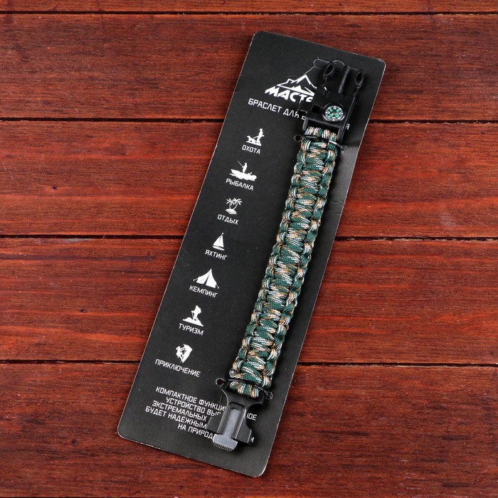 Браслет для выживания 4 в1 (паракорд, компас, свисток, огниво), 25.5×2.5 см, 3 м