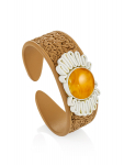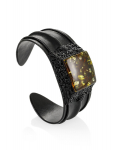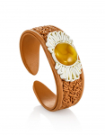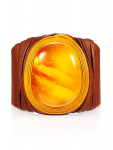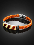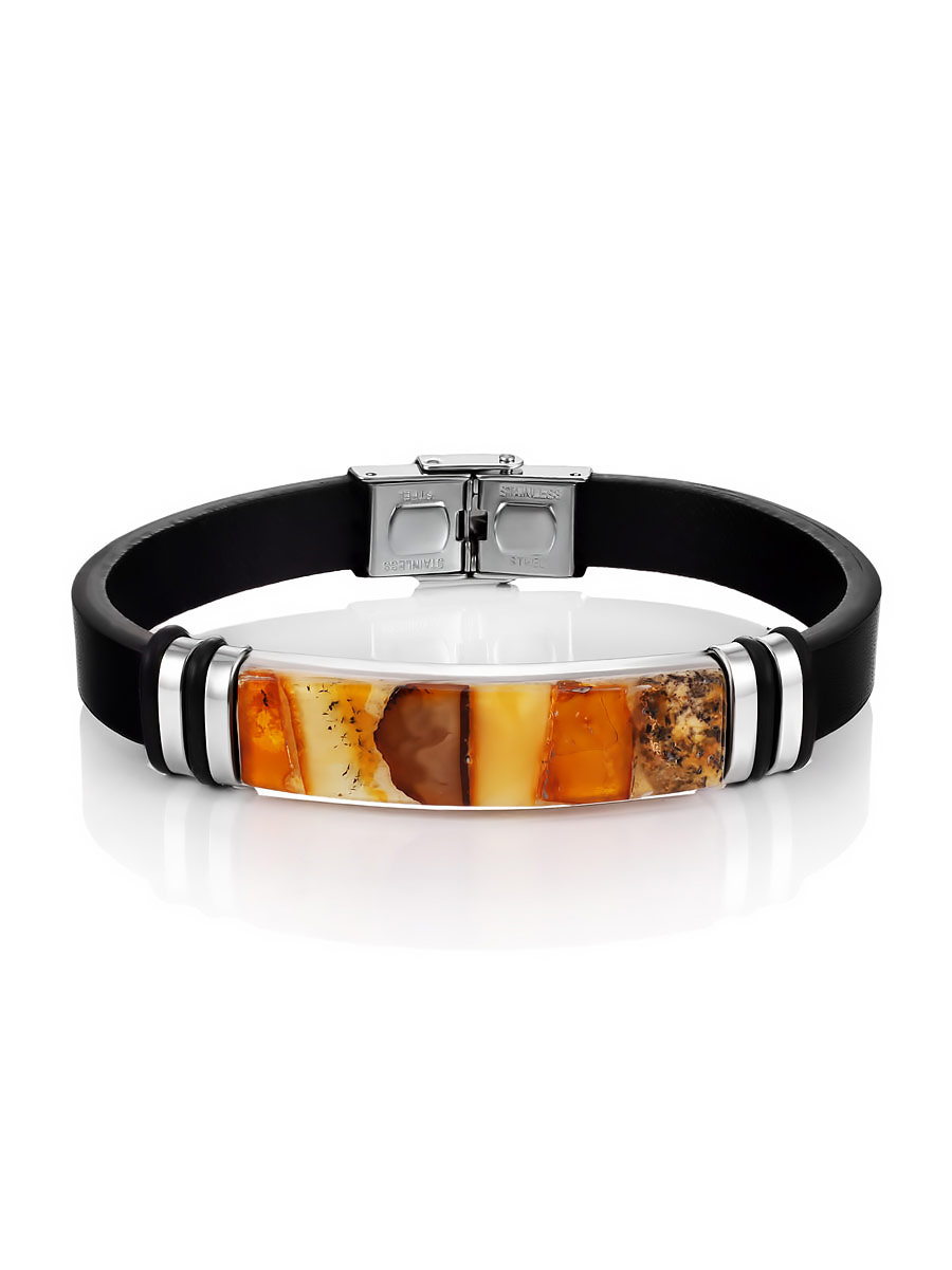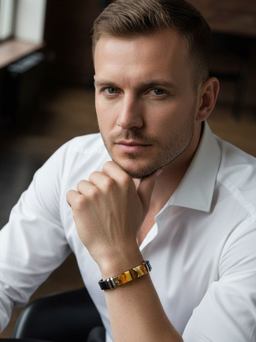 Мужской браслет из кожи, украшенный янтарной мозаикой «Сильверстоун»