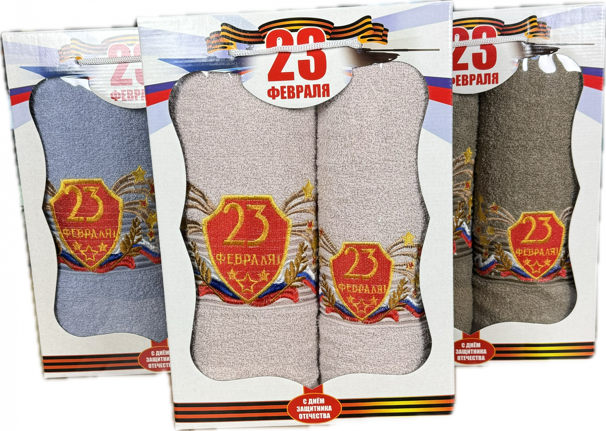 Набор махровых полотенец САЛЮТ 23 ФЕВРАЛЯ 2 пр р-р 70х140 и 50х90
