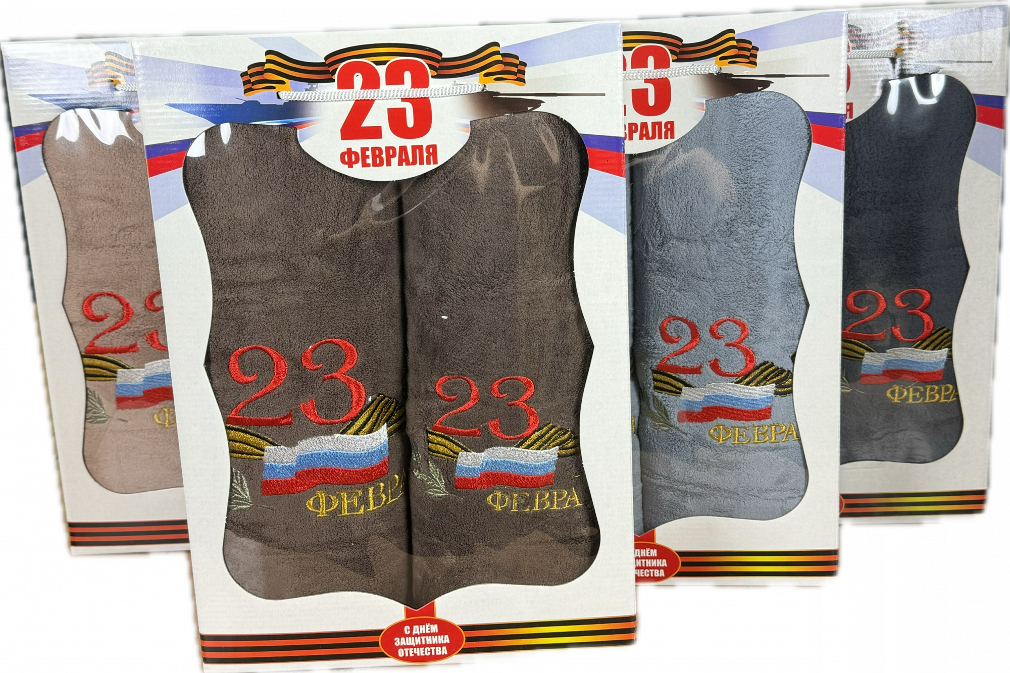 Набор полотенец микрофибра 569 23 ФЕВРАЛЯ С ФЛАГОМ 2 пр р-р 70х140 и 50х90