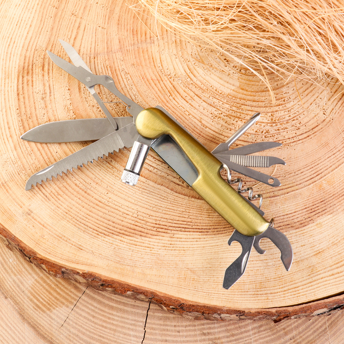 Нож многофункциональный 11 в 1, 15 см, клинок 60/2 мм, золотистый