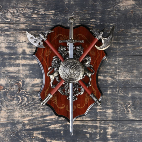 Настенное панно с изображением Медузы Горгоны, дополненное двумя топорами и мечом, станет ярким акцентом вашего интерьера. Это изделие не только украшает стены, но и добавляет элемент исторической значимости и силы, что идеально подходит для любителей геральдики и уникального декора.