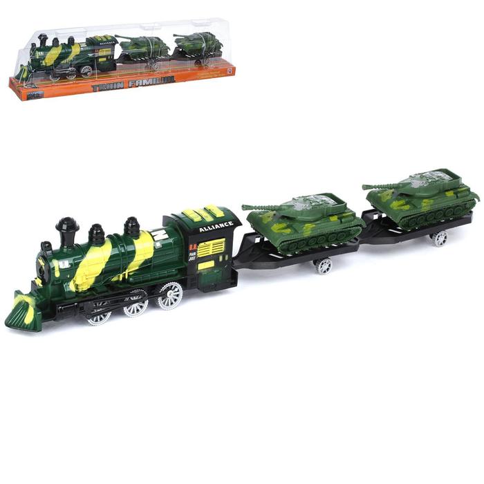 Паровоз инерционный «Военный», с танками, цвета МИКС