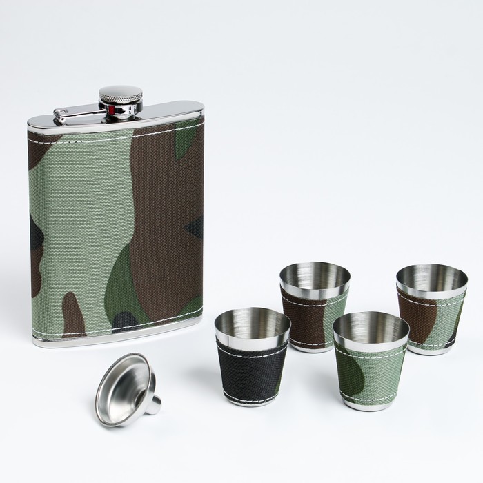 Подарочный набор 6 в 1 «Камуфляж»: фляжка 240 мл, 4 стопки, воронка, нержавеющая сталь, текстиль, зелёный