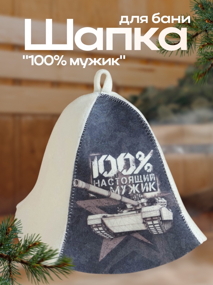 Шапка для бани и сауны с выразительным принтом «100% настоящий мужик». Создана для мужчин, ценящих комфорт и стиль в каждой детали. Комбинация шерсти (30%) и полиэфира обеспечивает идеальное сочетание теплозащиты и прочности. Универсальный размер (55-60) подойдет большинству пользователей. Дизайн с танком добавляет индивидуальности и выделяет из общей массы.