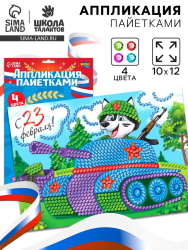 Аппликация пайетками для детей на 23 февраля «Танк», набор для творчества