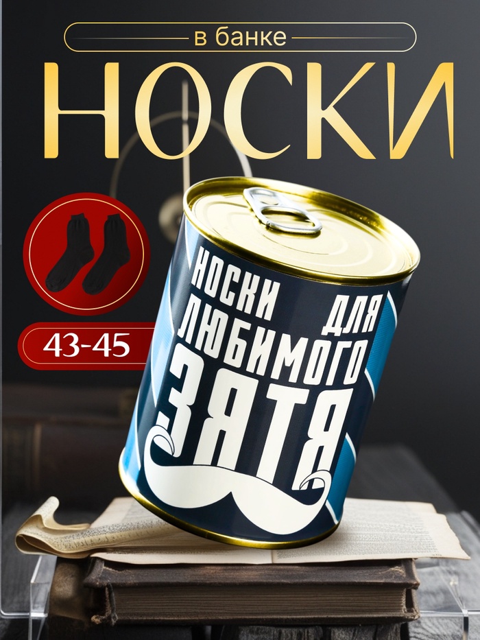 Носки мужские в банке «Для любимого зятя», подарочные, чёрные, 43-45 р-р