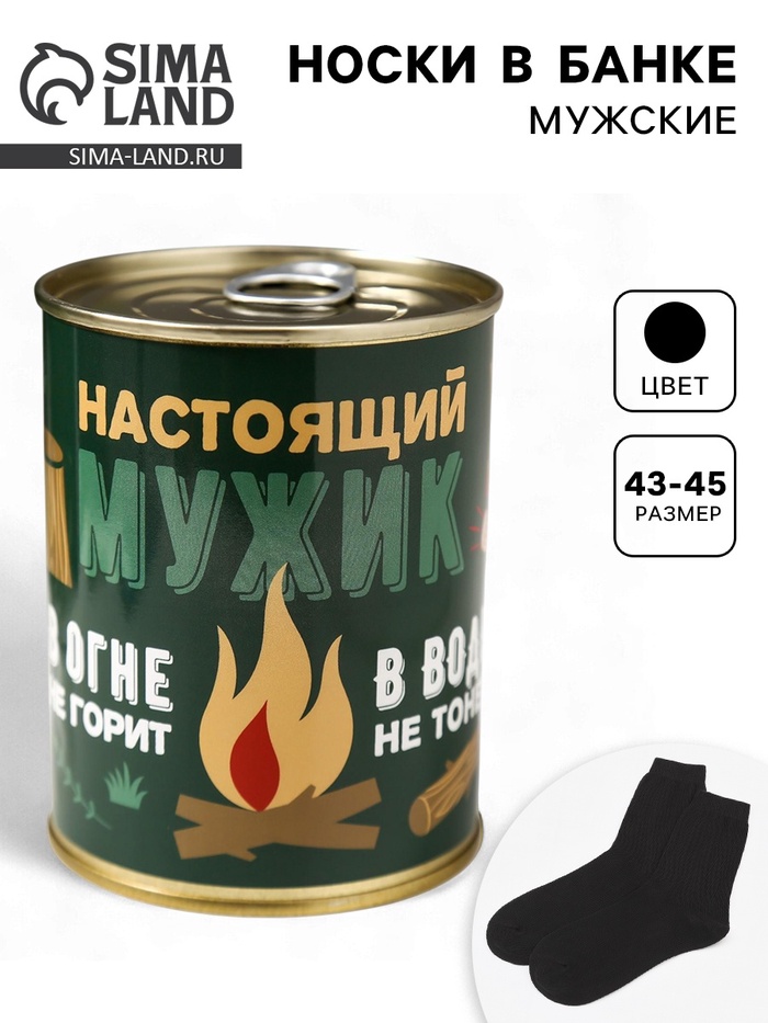 Носки мужские в банке «Настоящий мужик», подарочные, чёрные, 43-45 р-р