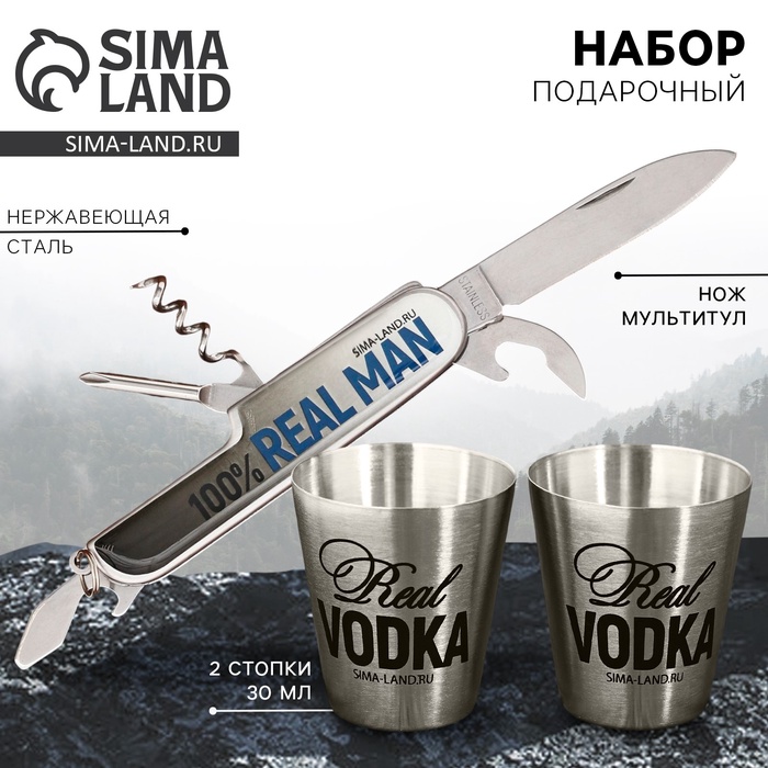 Подарочный набор мужской ABSOLUT, нож мультитул, стопки 2 шт.