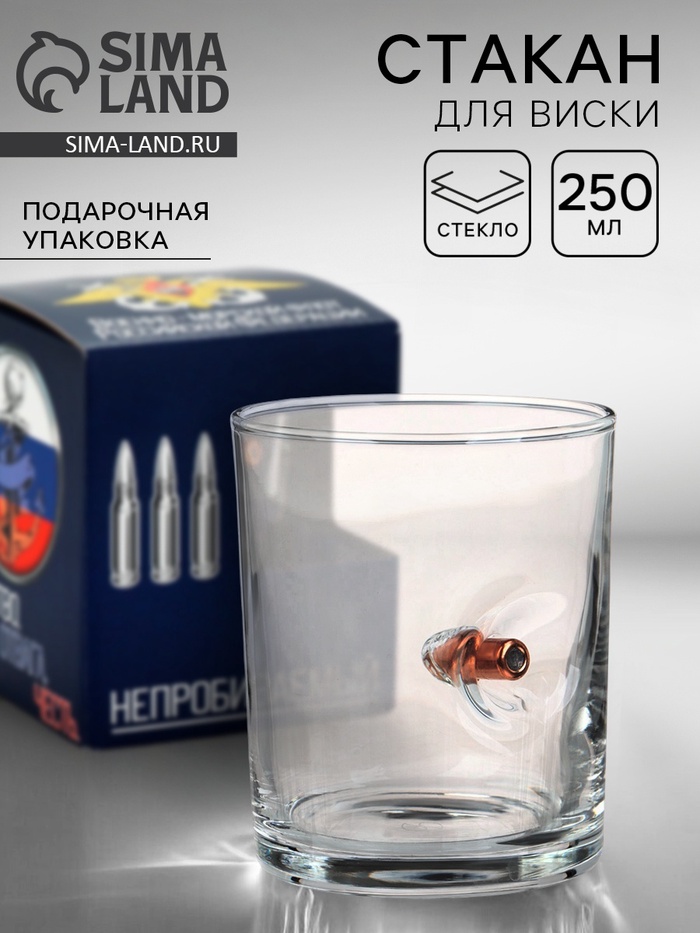 Стакан непробиваемый с пулей «ВМФ», для виски, 250 мл