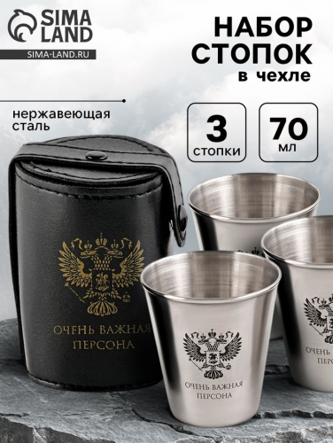 Стопки в чехле «Очень важная персона»: нержавеющая сталь, набор 3 шт. × 70 мл