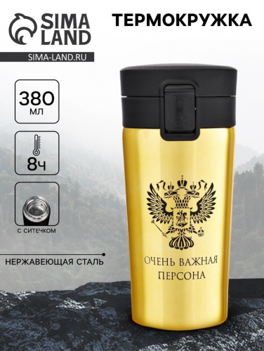Термокружка, 380 мл, «Очень важная персона», сохраняет тепло 8 ч, с ситечком