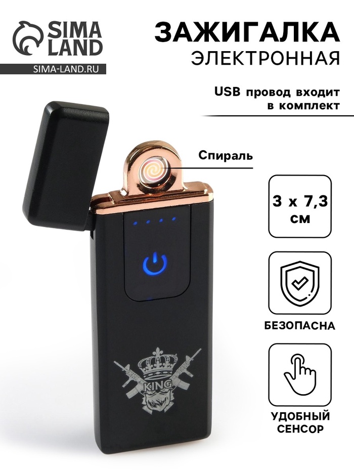 Зажигалка электронная KING, USB, спираль, 3×7.3 см