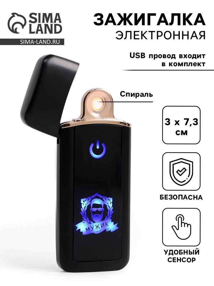 Зажигалка электронная «Мужик», USB, спираль, 3×7.3 см