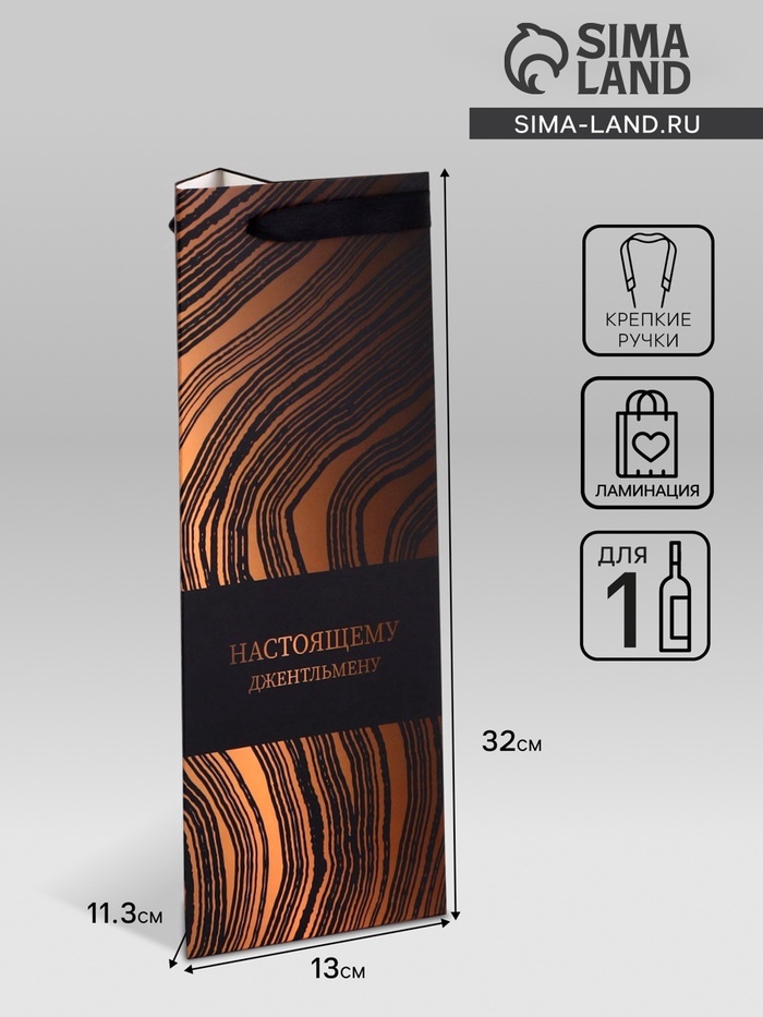 Этот креативный и плотный подарочный пакет предназначен специально для бутылок.