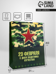 Яркий и динамичный дизайн пакета отражает дух мужества и силы, присущий Дню защитника Отечества. Такой дизайн подчеркнет значимость этого дня и покажет ваше уважение к человеку, которому предназначается подарок.