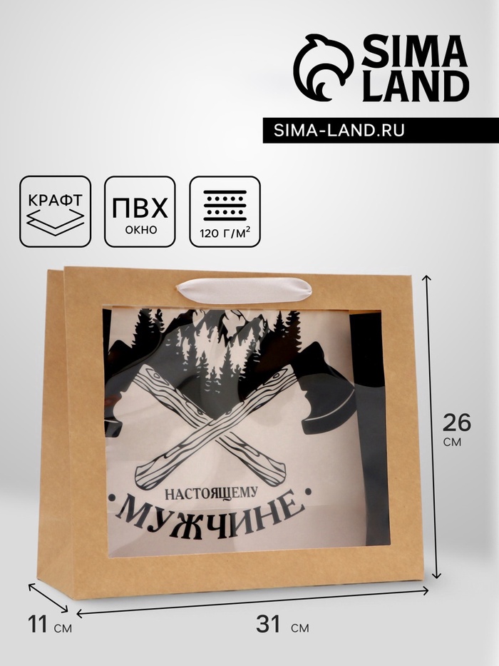 Пакет с PVC окном, «Настоящему мужчине», 31×11×26 см