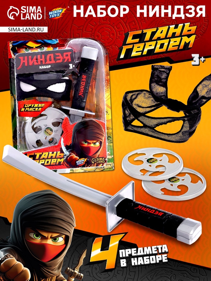 * В набор входят 4 предмета: маска, катана, сюрикены (2 шт.).